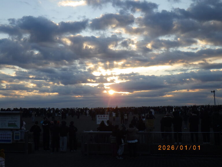 今年の初日の出は、水平線が雲におおわれ、日の出時間になっても